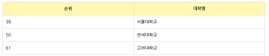 한국 대학교 순위 - QS 2026, Top 200위 기준