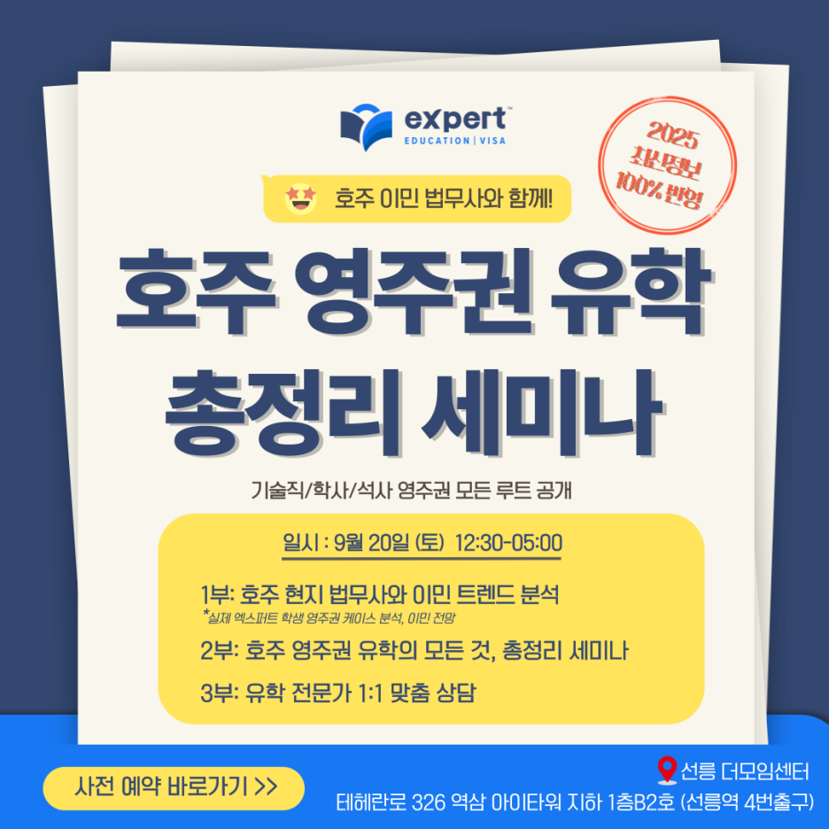 엑스퍼트 영주권 유학 총정리 세미나에서 모든 궁금증 해결하세요.